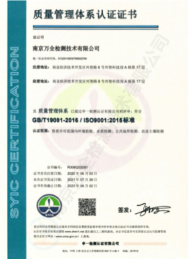南京萬全檢測技術有限公司,籌建于2013年1月,注冊資金500萬,公司坐落于南京經(jīng)濟技術開發(fā)區(qū)興智路6號興智科技園A棟17層,實驗室占地面積1750余平米。公司是一家獲得省級CMA計量認證資質(zhì)、具有獨立法人、政府認可的綜合性、專業(yè)性的檢測機構(gòu)。環(huán)境監(jiān)測業(yè)務是其重要的檢測業(yè)務之一,目前已獲得省級計量資格認可項目314項,設備齊全,具有較強的技術能力。